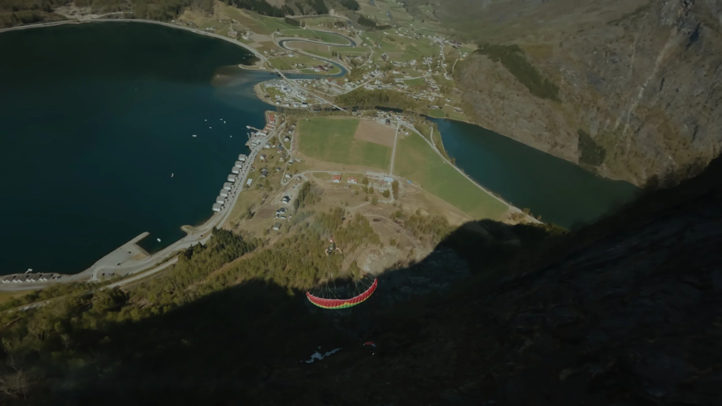 Our helicopter takes you up at the mountain tops , and you can either speedfly or speedride out in the fjord, landing right behind basecamp.